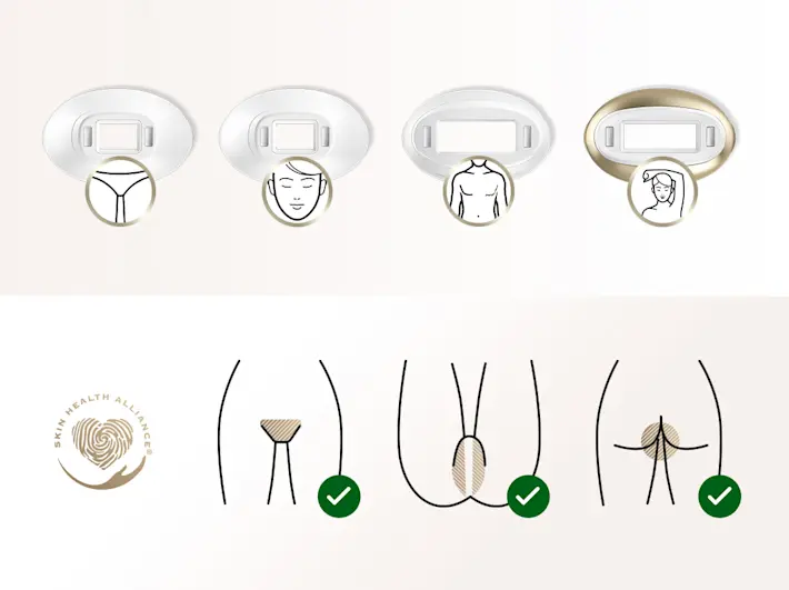 Dispozitivul nostru pulsează doar dacă este sigur pentru tonul pielii dvs. Asigurați-vă că combinația de culoare dintre nuanța pielii și părul dvs. este adecvată pentru IPL. A nu se utiliza pe tatuaje, machiaj permanent, pete pigmentare, semne din naștere, alunițe, negi sau fillere dermale.