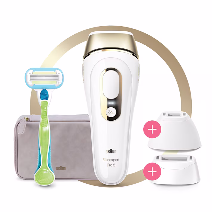 Bucurați-vă de 2 ani de piele fină¹ cu Braun Silk·expert Pro 5. Beneficiile principale? Braun IPL vă oferă 2 ani de piele fină¹. Este, de asemenea, convenabil și discret, permițându-vă să îl utilizați când vă este mai comod. În plus, Braun IPL vă permite să alegeți un mod sensibil pentru prima utilizare sau atunci când tratați zone sensibile, cum ar fi cele intime.