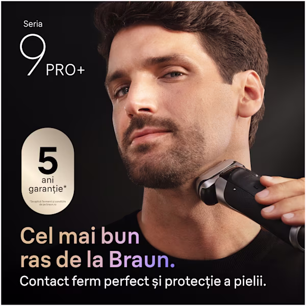 Fabricat în Germania, proiectat să dureze ani de zile: Aparatul de bărbierit electric Seria 9 PRO+ pentru bărbați este fabricat din materiale de înaltă calitate, cu o mare atenție la detalii și testat pentru un uz de lungă durată. 100% rezistent la apă pentru un bărbierit umed și uscat. ProTrimmer integrat pentru precizie asupra celor mai lungi fire de păr. Durată de funcționare a bateriei Li-Ion de până la 60 minute.