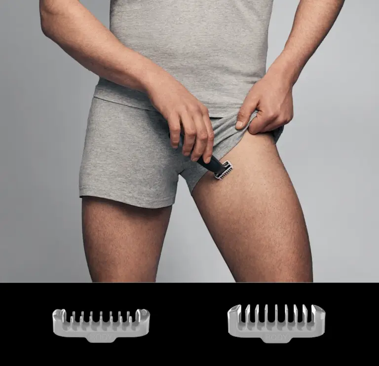Atașează protecția SkinGuard la lungimile de 0 și 3 mm pentru a îngriji în siguranță zonele sensibile precum zona inghinală, piept și axilă.